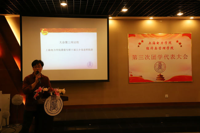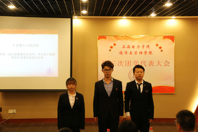 2018年6月14日,上海电力学院英国上市公司官网365第三次团学代表大会暨上海电力学院英国上市公司官网365第三次学生代表大会(以下简称“双代会”)在崇德楼214隆重举行。本次双代会是在全院上下认真学习贯彻党的十九大精神及习近平总书记系列重要讲话精神,培育和践行社会主义核心价值观,推进学院章程建设和制度改革,完善学院内部治理和提升优化的背景下召开的一次重要会议。出席本次大会的领导有上海电力学院校团委专职干部王少龙,英国上市公司官网365党委副书记周维刚,英国上市公司官网365团委书记李玲丽,英国上市公司官网3652015级辅导员卢珍老师。以及来自能源与机械工程学院的分团委副书记蔡哲玮和其他双代会候选人、正式列表、列席代表。大会主席团严思奇主持本次会议。