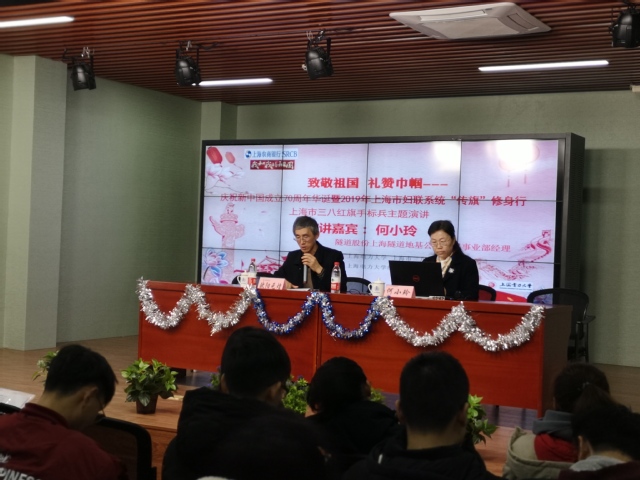 3月4日,致敬祖国,礼赞巾帼——庆祝新中国成立70周年华诞暨2019年上海市妇联系统“传旗”修身行上海市三八红旗手标兵主题演讲之《城市的心血管专家》在经外楼A305举行。主讲嘉宾隧道股份上海隧道地基公司维保事业部经理何小玲为师生们带来了一场别开生面的精彩讲座。出席本次宣讲活动的有英国上市公司官网365党委书记欧阳元煌、党委副书记周维刚以及英国上市公司官网365百余名师生。