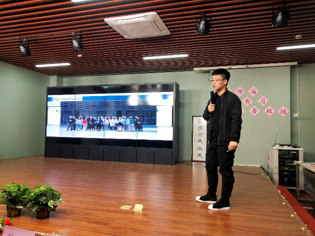 随着主持人的开场,活动正式开始。在PPT展示环节中,每班班长围绕“书香班级”这一主题分别进行了活动风采展示,体现了满满的创意,也让大家体会到班委们的用心组织。其中2018211班重点展示了趣味读书分享会、分版块演讲对话、图书馆研讨会等内容,在图书研讨会上同学们学习一些借阅书籍的细则和使用流程,也为将来的论文文献查阅做足了准备;2018131班在本次活动中也独具特色,他们以学校文化为依据,以书香文化为主题,以“扬帆魅力四月,书香红色青春” 为口号,制定了富有个性的班级文化特色,以小组合作的形式来实施班级文化建设,为班级同学搭建了解经典传统文化、继承民族智慧的平台。除此之外,2016272班作为连续三年坚持参加“书香班级”活动的班级,长期坚持培养每一名同学的读书习惯,定期举办图书分享会,曾举办过倚书为马、图书分享会等读书活动,班级同学参与度极高,反响强烈。