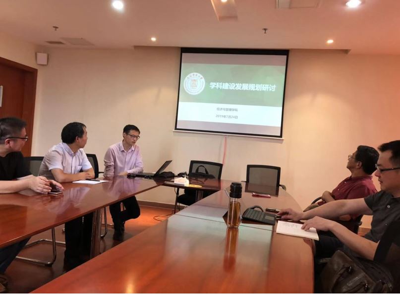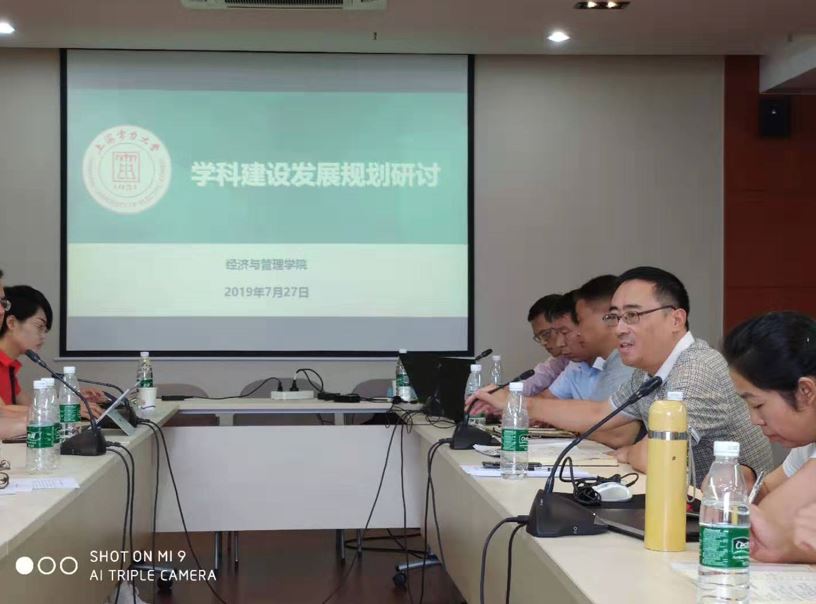 第1阶段的工作主要是收集资料、调研、学习和内部梳理。学院学科建设规划编制小组于7月10日-18日期间2次参加了学校的学习研讨会,并于7月19日,23日和26日召开了三次学院内部的学习研讨会,参与讨论的其他老师还有学校发展规划处处长施泉生、学院部分骨干教师孙波、崔树银、韩云昊、刘玲、滕敏敏等,并有针对性地邀请了来之上海交大、上海大学、海事大学、应用技术大学的校外经济管理领域专家参与交流。其中,7月27日上午,学校学科建设规划指南编制领导小组调研学院学科建设规划编制情况,潘华向学校学科建设规划小组进行了学院学科建设规划初步方案汇报,汇报内容包括学院学科现状分析、学科建设总体原则和布局、学科建设规划等,总体上得到了认可,与会学校学科建设规划指南编制小组成员给学院学科建设规划提出了许多宝贵的建议和意见。当天下午,学院学科建设规划小组进行了集体讨论,充分消化和吸收学校学科建设规划指南编制小组的意见和建议,讨论会后,学院学科建设规划编制小组成员按照各自所负责的内容进行深化。8月2日全天,学院学科建设规划小组参加了全校各学院学科建设规划汇报讨论会,潘华从学院学科建设现状分析、建设原则和思路、建设计划、人才培养、保障措施等方面作了比较全面的汇报,并听取了学校规划指南编制小组的意见和建议。