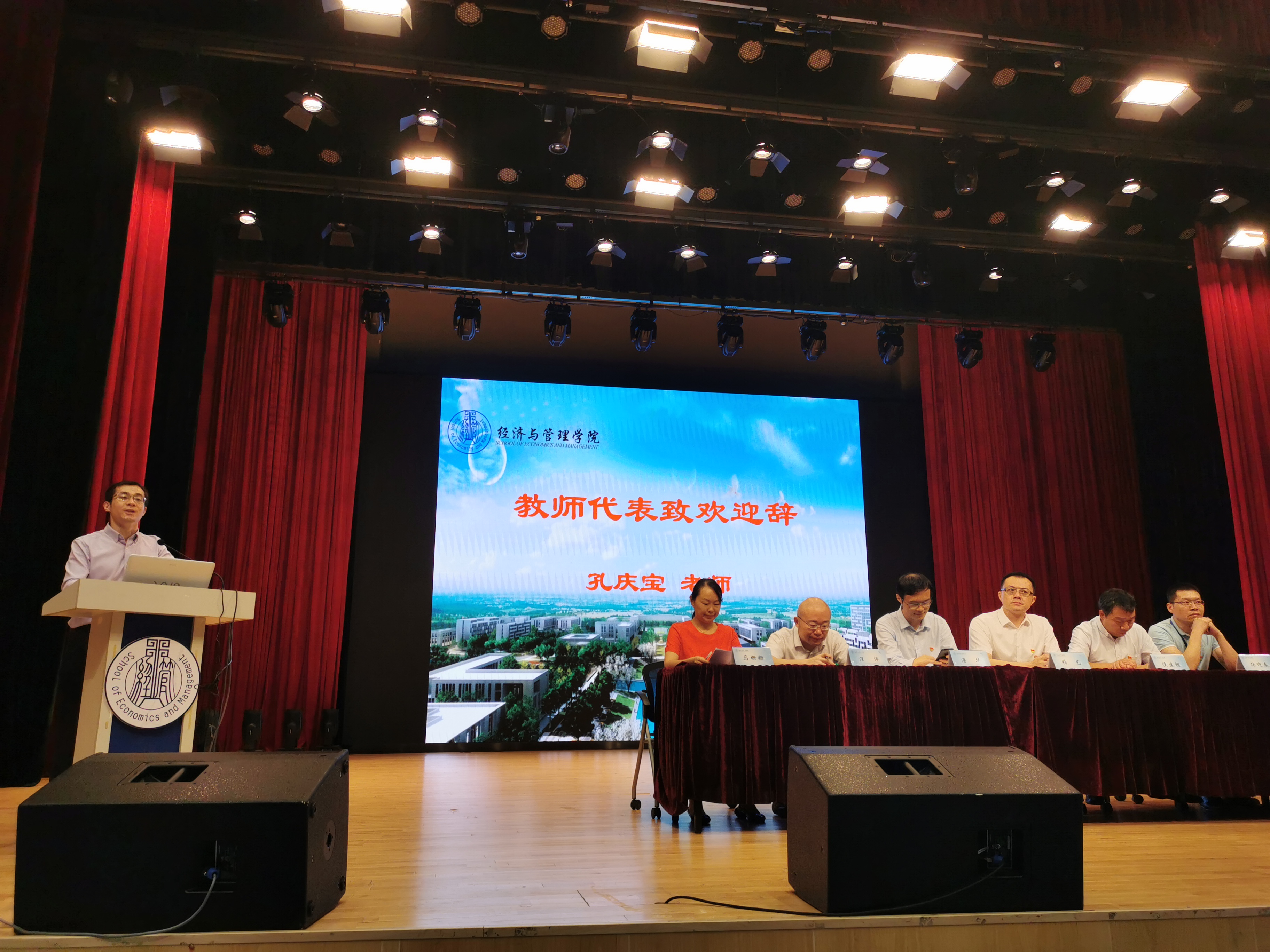 随后,现任经管团学学生会主席、经济学专业2017271班的丁体康作为老生代表发言。他激励新生们尽早做好大学规划,积极参与第二课堂,并与新生共勉,努力进取,成为最好的自己。2019级电管专业的汪昕杰作为研究生新生代表进行发言,回忆了本科四年在上电英国上市公司官网365的美好时光,“有所作为是生活的最高境界”,与在场所有学生共勉,一同开创美好的未来。2019级工商专业本科生新生代表沈佳慧进行了“以梦为马,不负韶华”的主题发言,表明新生们要用青春挥洒汗水,以梦为马,不负韶华,为上电添彩!