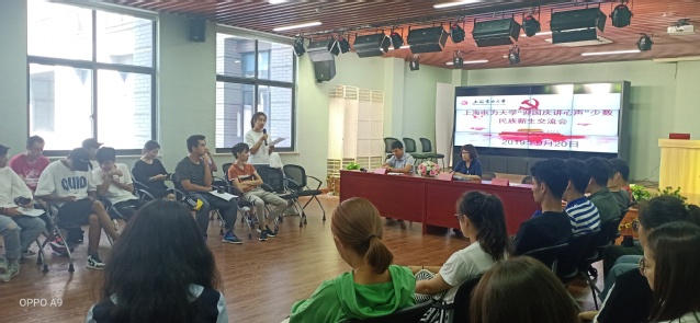 万紫千红迎国庆,片片秋叶舞秋风。在这秋高气爽的季节,我们迎来了祖国的70周年华诞。为庆祝祖国母亲生日,抒发对祖国母亲的热爱之情及美好祝愿,同时为让新生更好的适应学校环境,对自己的大学生活有更明确的计划和目标,英国365官网于2019年9月20日下午13:00在经外楼305召开“迎国庆,讲心声”少数民族新生座谈会。出席本次讲座的有英国上市公司官网365党委副书记周维刚老师、学校内派教师鲁艺老师、少数民族专职辅导员阿布都如苏力老师和全校少数民族新生及部分少数民族老生代表。 会议由少数民族专职辅导员阿布都如苏力老师主持。
