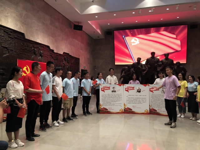 下午,老师和同学们前往中共四大会址进行参观。路上,老师们把党的四大的相关内容发给同学们,共同学习了这次重要会议相关内容以及历史意义。在中共四大纪念馆门口,在党旗见证下,周维刚副书记带领师生党员重温入党誓词,大家再次以嘹亮的声音做出了庄严的承诺,一句句铮铮誓言,激励着每一位党员要时刻严格要求自己,也表达的是每位党员“不忘初心、牢记使命”的信念和决心。
