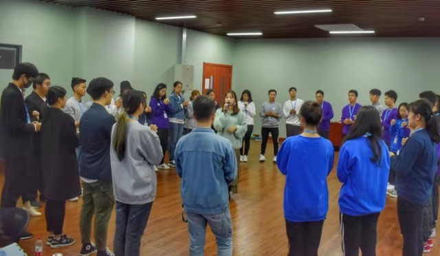 随后,周颖老师组织50名学员开展团训拓展活动,学生在欢快愉悦的氛围中,齐心合力完成了走出舒适区、转圈握手、队旗制作、Campus walk等团训活动,通过团训活动收获了一份份珍贵的友谊,增强了团队凝聚力,提升训练营学员们的人际交往能力和人际适应能力。