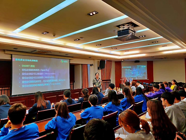 陈燕以“实习打开职场高端之门”为主题,讲述了实习的职位概要、工作内容和任职资格等,提出要提高择业目标的清晰度。通过分析实习带给同学们的帮助,建议学员们积极参与实习、扩展职业发展人脉、增加职业发展的适应性和职业再规划。