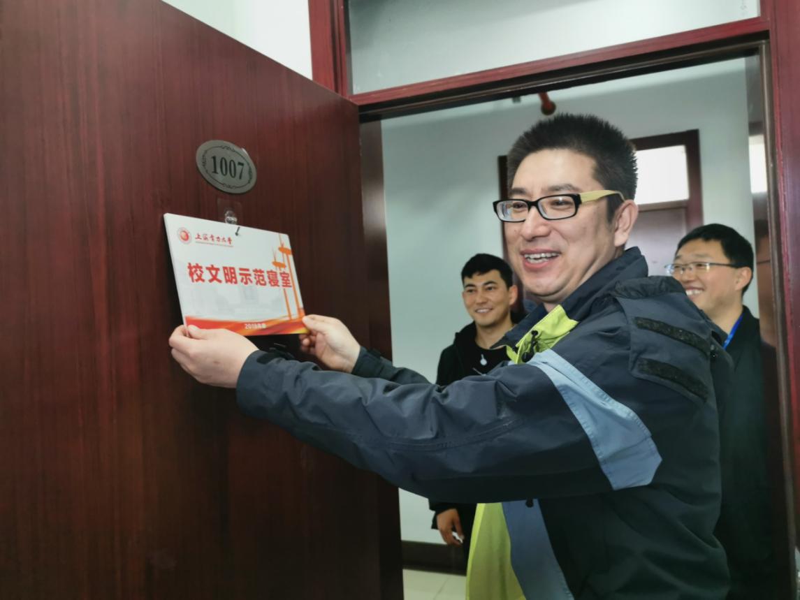 2019年12月13日英国上市公司官网365到学生宿舍对获奖校级文明寝室进行挂牌仪并发荣誉证书,英国上市公司官网365党委副书记周维刚,辅导员杨红娜、孙攀峰、阿布都如苏力参与挂牌仪式。党委副书记周维刚祝贺获奖同学并鼓励他们继续保持优秀的习惯,带动更多的同学加入到文明寝室创建行列,共同推进寝室文化建设。