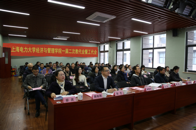2020年第一个工作日1月2日下午,经济与管理学院第一届教代会暨工代会在临港校区经外楼305会议室召开。校党委副书记、纪委书记李艳玲、校工会副主席金炜、校党委组织部董雪应邀出席,学院党政领导、全体教职工参加会议,学院工会主席容庆主持会议。