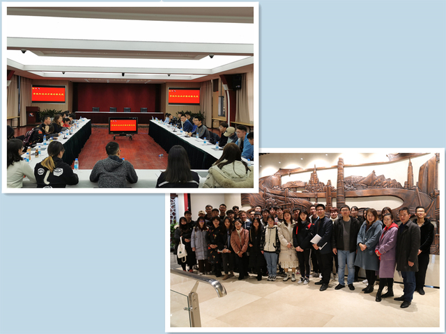 2020年1月6日,辅导员陈鹏、孙攀峰、张之明、王卲萱带领30余名学生走访参观了上海机械施工集团。机施集团团委副书记(主持工作)魏毅、人力资源部招聘经理吴栩与师生进行了座谈。吴栩就企业人力资源概况、人才培养计划等进行了专题介绍;魏毅结合自身工作经历从思想引领、岗位建功、人才培养和品牌引领四大模块进行了详细介绍,希望能够有更多的优秀学子通过校企合作来提前感受企业氛围,同时也表示企业支持员工继续深造。