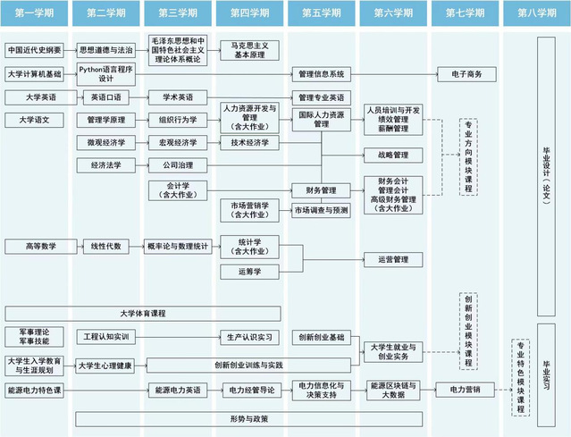 专业培养目标:本专业结合学校工科背景和学院多学科优势,培养适应国家经济建设与能源战略发展需要,德智体美劳全面发展,具备人文精神、科学素养、诚信品质、创新意识、团队精神,以及良好的公共意识与国际视野;掌握现代经济管理理论及管理方法,具备较强的企业经营管理实践能力,能够胜任各类工商企业、电力系统、事业单位和各级政府部门管理岗位工作的应用型、复合型管理人才。
