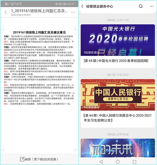 英国上市公司官网365学工队伍也始终坚持思政教育的主责主业,主动运用疫情工作中涌现出来的先锋模范事迹激励广大同学。特别是在首日教育和第一堂思政课当中,辅导员老师积极引导广大同学增强“四个意识”,坚定“四个自信”,做到“两个维护”,践行使命担当与责任坚守,培养家国情怀、见诸爱国主义行动,同时还积极发挥学生党员和干部的模范带头作用,针对线上教学过程中学生的思想情绪动态,及时排摸了解,对学生在朋友圈、微信群、QQ群反馈的线上教学问题,第一时间收集整理、反馈响应。学工队伍一方面收集学生上课满意程度与存在的问题,另一方面通过学院的春季教学督查小组多方了解老师们的课堂情况,实现双向互动,精确定位,联手制定“一个不落”的解决方案。