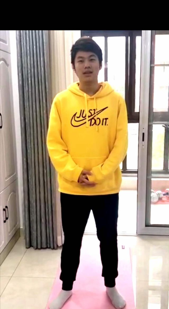 第一期由2016300体招班凤政凯同学带领大家进行居家运动,凤政凯同学是学校的手球队员,之前随学校手球队获得2017、2018年全国大学生手球锦标赛亚军,2019年获得全国锦标赛冠军,而且小凤教练从大二开始就在南汇的篮球训练营做一名篮球教练,疫情期间小凤教练也被英国上市公司官网365电视台EUTV邀请直播居家运动。