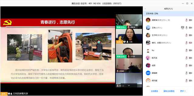 学生党支部也纷纷邀请抗疫志愿者分享一线抗疫经历,英国365官网共有5位学生党员参与了抗疫志愿服务。学生党员任天爱,上海浦东界龙村防疫志愿者,负责道口登记及体温测量,经常一站就是大半天,忙得喝不上一口水。学生党员王超晨,一位退伍军人,河南鹤壁福田五区社区疫情志愿者,他说要向逆行奔赴疫区一线或始终坚守岗位奋战的英雄们致敬。学生党员卢航,河南商丘虞城郑集乡卢楼村委会疫情防控志愿者,每天站在尘土飞扬的路口登记车辆信息,从白天到黑夜,没有丝毫懈怠。学生党员靳添屹,河南许昌社区志愿者,为做好到户到人工作,经常一天下来要走上万步,爬上千个台阶。学生党员周林,在2017年突患重症,面对窘迫的家庭情况,多亏了有师生们、乡亲们为他慷慨解囊,让他感恩在心。面对疫情,他主动提出加入安徽安庆江塘乡五星村党总支村委防控疫情阻击队,他说:当初是乡亲们跟他站在一起,给了他战胜病魔的信心;如今,他应该和乡亲们站在一起,严格把关,科学防控,同患难共担当!虽然辛苦,但是他们依在坚持,因为他们有一个共同的名字,叫做共产党员,这场防疫战是一张检验“初心使命”的考卷,他们交出了答案,因为他们明白,全心全意为人民服务就是他们的责任与义务。在党员学长姐的带领下,英国365官网一共有80名学生志愿者参与了疫情防控志愿者工作,他们正是战“疫”中闪闪发光的青年力量。