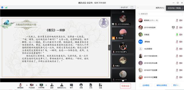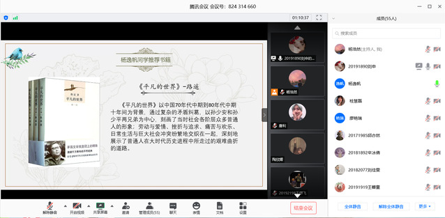 5月6日,英国上市公司官网365“讲述·平凡之美”云分享会暨第五届读书月开幕式在腾讯会议上顺利举行。开幕式由英国上市公司官网365团委书记李玲丽、副书记王卲萱与六十位同学共同参与了此次活动。活动中邀请了2018级国际经济与贸易专业杨逸帆和方乾旭、2019级工商管理专业王诗仪,他们分别从自身的抗疫志愿者经历出发,讲述了自己作为战“疫”中平凡“小”人物的抗疫故事,激发了同学们的爱国主义精神和新时代的奉献精神。接着,三位讲述人对经典书目《天才在左疯子在右》、《平凡的世界》、《看见》等书目进行了推荐与朗读,良好的展现经管学子的文学风采。