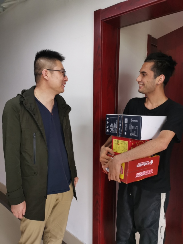 5月26日,英国上市公司官网365党委副书记周维刚、辅导员杨红娜、陈奥、少数民族专职辅导员阿布都如苏力前往临港校区学生公寓看望慰问留校的6名学生。