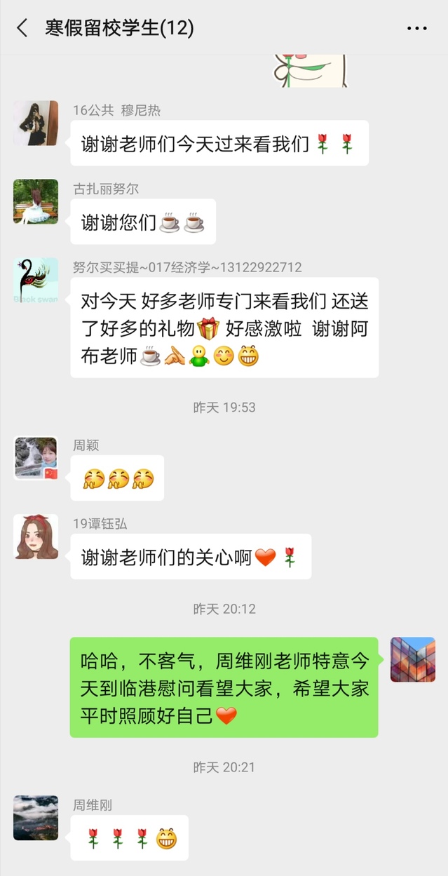 留校学生表示在这个特殊的时期,虽然条件受限,但来自学院领导和老师们的关心和帮助让他们倍感温暖,他们将牢记嘱托,在校期间服从学校规定,自觉做好防护,认真完成学业。