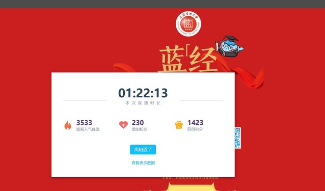大会在上电赫兹合唱团的云上合唱《我和我的祖国》中结束,此次表彰大会是英国上市公司官网365线上开展的首次大型直播活动,活动的流量峰值人气达3533人,同学们发送弹幕2000余条,直播为新设账号带来活跃粉丝294人。这次首创的云上表彰大会以五四精神为内核,高举社会主义旗帜,在表彰先进的同时为学生开设了一堂别开生面的“四史”学习教育课,不仅让广大同学和老师们相聚云端,引领经管广大学子向榜样看齐,更为学院创新活动形式,打造热点新媒体平台奠定了重要基础。