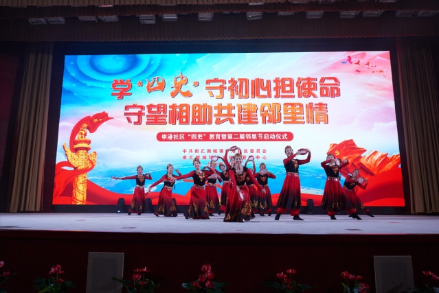 活动开始,主持人首先带领大家一起回顾了申港社区一年来工作历程的精彩剪影。南汇新城镇党委副书记黄继军宣布南汇新城镇申港社区“四史”教育暨第二届邻里节活动正式启动。申港社区党委书记虞尧为本次活动致辞,对各位领导和居民朋友们参加此次活动表示感谢,并祝愿申港社区第二届邻里节活动成功举办。随后,南汇新城镇党委副书记黄继军、副镇长马玉飞对在疫情防控工作中大爱相助、无私奉献的爱心捐赠单位和个人颁发锦旗,感谢他们疫情期间对南汇新城镇和申港社区疫情防控工作的大力支持。在仪式结束之际,辖区单位和居民代表为活动现场带来了精彩的节目表演。通过文艺表演的形式,宣传党史、新中国史、改革开放史和社会主义发展史,让“四史教育”更加深入人心,获得广大党员群众的共鸣。