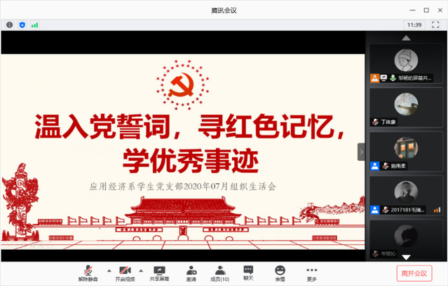 为贯彻习近平新时代中国特色社会主义思想,同时结合“不忘初心,牢记使命”主题教育,加强“四史”学习和优秀党员先进事迹学习,应用经济系学生党支部于线上开展了“温入党誓词,寻红色记忆,学优秀事迹”主题党日活动。