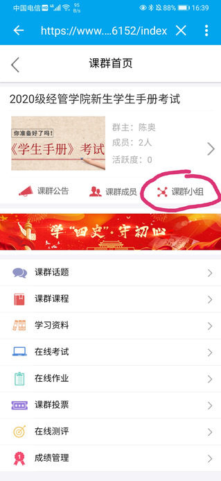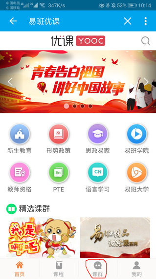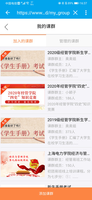 3、点击“课群”,“添加课程”(邀请码:9LV6XGSU);