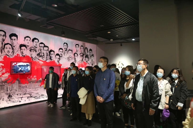 活动第一个环节是致敬英雄烈士,为烈士敬献鲜花。学院师生排着整齐队列来到烈士墓前,伴随着《中华人民共和国国歌》、献花曲与国际歌,为烈士先辈们敬献花篮,并致以深深的三鞠躬,表达师生全体对先烈们的深切缅怀。随后,在工作人员的带领下,全体师生参观先烈事迹展厅。通过解说员的细致讲解,同学们认真学习了党的发展历程与烈士们的生平事迹,通过一张张历史照片、一幅幅创作油画、一件件先烈遗物以及声光电沉浸式体验等方式深刻地感知历史,大家被先烈们的英勇献身精神深深的震撼,驻足观看,久久不肯离去,大家深刻感受到了中国共产党带领中国人民走过的艰辛历程,认识到今天的和平年代与幸福生活来之不易。