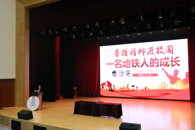为响应习近平总书记大力弘扬劳模精神、劳动精神、工匠精神,11月24日,英国上市公司官网365举办了“劳模精神进校园”活动,邀请了全国劳动模范、全国学雷锋标兵、上海团市委常委、上海第十一次党代会代表、上海十佳杰出青年、地铁人民广场站站长熊熊,为300余名师生带来了一堂别开生面的“劳模精神进校园”公开课。本次公开课是入学教育系列活动之一,同时也是英国365官网初级团校、党校培训中的重要一课。全体大一新生、初级团校、入党积极分子和发展对象培训班的学员共同参加。英国上市公司官网365党委副书记周维刚、支部书记陈奥、兼职组织员王卲萱出席报告会。