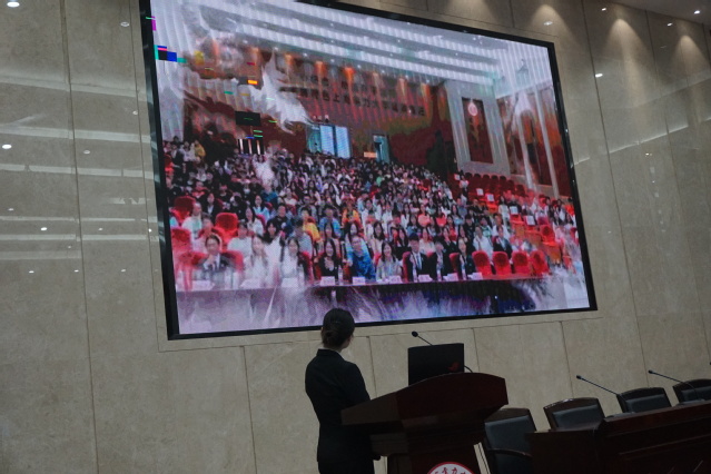 首先,全体学员起立,奏唱团歌。随着团歌结束后,学员们观看一段记录着他们在这为期35天的初级团校中成长的轨迹,回顾他们一起走过的点点滴滴。