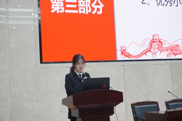 张欣然作为优秀学员代表发表了关于她在这届初级团校活动中的心得体会。她从自身出发,总结了此次活动中的几点收获:第一,通过技能培训,在不同层面的知识和能力都有所提高,帮助她更好地处理问题,服务同学;第二,明确了学习的目标和定位;第三,感受到团队合作的重要性。张欣然说到她将把学习成果运用到今后的学习与工作中,同时也希望每个人都能学有所获,学有所成。