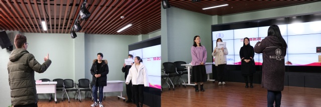 比划猜名词,乐趣学四史。第二轮竞赛要求各参赛队伍分工合作:一人描述,两人猜题,猜题人需在三分钟内根据队友的描述猜测“四史”知识名词。“十年树木,百年树人”、“人民代表大会制度”等耳熟能详的“四史”词汇依次出现,参赛人员在欢声笑语中高潮迭起,充分展现了大家对“四史”知识词汇的独到见解。