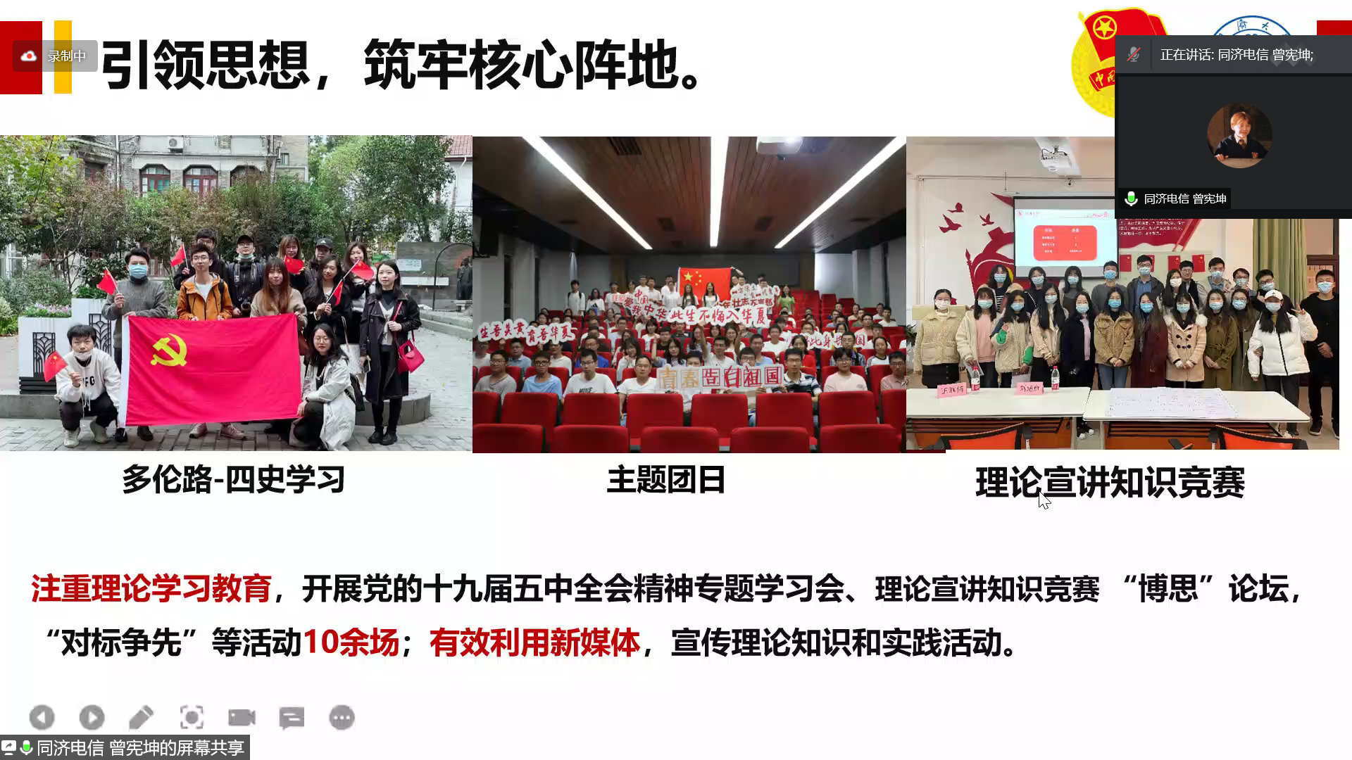 在云端论坛环节中,各高校团学骨干代表依次立足于各校团学工作亮点进行了发言。大家纷纷表示,作为团学骨干,自身的作风状态、工作本领,是学生组织的集体形象,要恪守学生本分、牢记服务广大同学的宗旨,永葆理想主义情怀、扎扎实实做事,时刻牢记责任、奉献和自律,彰显朝气蓬勃、积极向上的团学骨干风采。