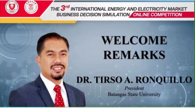 菲律宾八打雁大学校长Tirso A Ronquillo在讲话中代表八大雁大学祝贺本届商业模拟大赛成功举办,并对支持和参与此次大赛的国内外高校以及企业表示衷心的感谢。他表示学术无国界,希望我们都在这次能源电力行业的商业模拟比赛中积累经验,不断进步,并建立更深厚的伙伴关系,进一步增进国内外高校友好交流与往来。