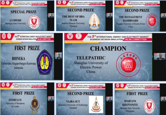 闭幕式进行了颁奖仪式。本次比赛决赛答辩由5位专家组成,其中3位来至芬兰CESIM公司、2位来至菲律宾八打雁大学。参赛团队最终决赛成绩由现场答辩成绩(50%)+线上比赛成绩(50%)构成。经本次大赛平台提供方芬兰CESIM公司CEO Veijo Kyosti发布官方确认函:由我校电气工程学院周波、英国上市公司官网365蔡依平和张科伟三位老师联合指导的英国上市公司官网365TELEPTHIC团队以99.7的高分获得本届比赛冠军。来自斯里兰卡莫勒图瓦大学STIMULUS团队、菲律宾八打雁大学SPARTANS KRYPTONITE团队分别以98.8和96.3获得一等奖。