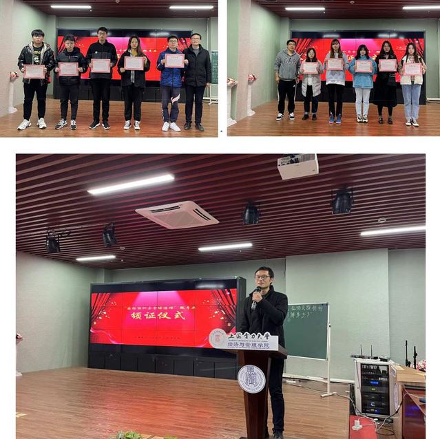 潘华和吴威猛向本次修读总成绩前10名的同学(肖潇、徐成伟、张可凡、杜仕威、周思琦、李心楠、龙冰倩、张莉娟、程珊珊、陈梦媛)颁发优秀奖,以资鼓励。