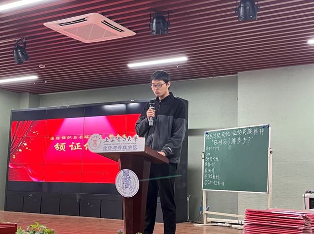 优秀学生代表肖潇分享自己本次修读的学习心得。肖潇同学反映,通过将近一年的微专业学习,不但拓宽了他的国际视野,对国际组织,相关非营利组织和世界各国政治发展有了更深的认识,更加深了自己对联合国在内的国际组织的认知与了解,增强了自身对祖国和民族的强大自豪感及人类命运共同体情怀。