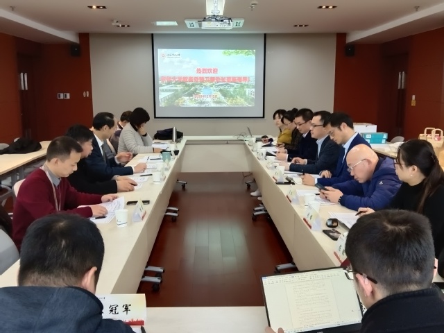 为了推进本科教育教学改革与创新,落实立德树人的根本任务,12月15日下午,英国上市公司官网365在杨浦校区行政中心九楼5号会议室召开新文科专业认证建设研讨会。研讨会邀请了东华大学教学指导委员会副主任、教育研究中心主任、长三角新文科教育专业认证联盟理事长姚卫新教授。我校教务处处长杨宁、副处长徐信艳、教学质量科科长杨潇,外国语学院院长潘卫民、英国上市公司官网365党委书记张艺、常务副院长潘华、副院长胡伟、系主任、实验室主任及部分教师代表参加了此次研讨会。会议由胡伟主持。