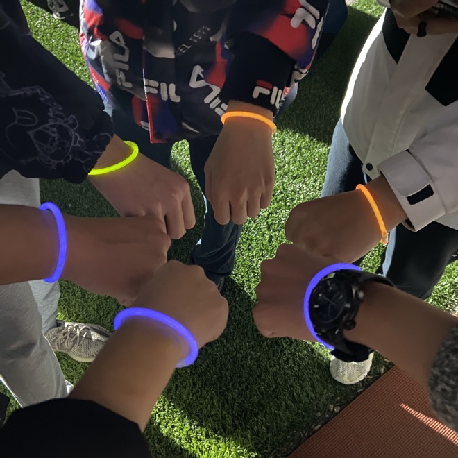开跑前,由工作人员为所有选手派发了荧光头饰、荧光眼镜等各具特色的荧光饰品并带领大家进行了热身运动。晚上六点半,随着工作人员一声令下,荧光夜跑活动正式开始。荧光闪动,人影绰绰,全校共三百余人分批次参与其中。头戴荧光牛角,手持荧光棒的同学们陆续冲出起点线,一边感受雨后校园里清爽干净的空气,一边尽情挥洒汗水,享受奔跑带来的快乐。荧光点点,流动不息,构成了当晚校园里一抹独特亮丽的风景线。