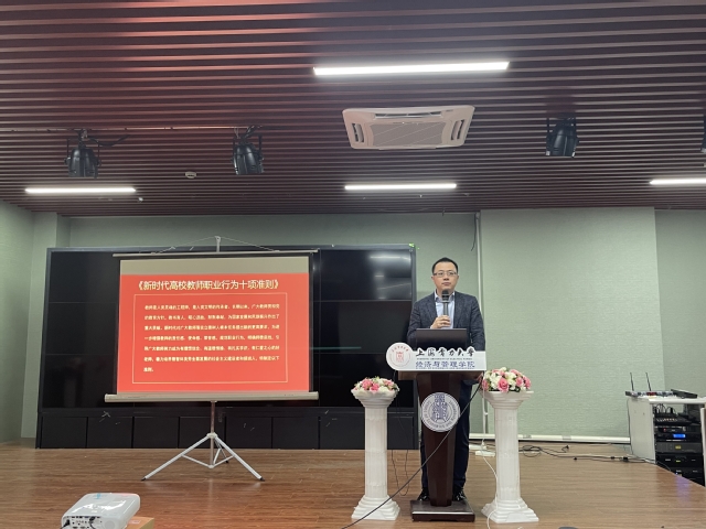 为落实校党委第二轮巡察反馈意见整改,进一步加强师德师风建设,推进学院全面从严治党和党风廉政建设,保障学院各项工作的有序开展,12月28日下午,经济与管理学院在经外楼A305召开了“师德师风专题学习全院大会”,进一步强调加强教师思想政治工作与师德师风建设的重要性、必要性,学院领导班子以及全体教职工参加了会议。