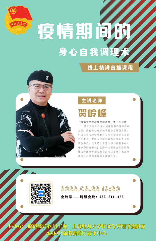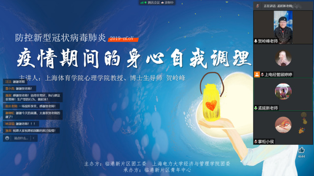 为更好做好疫情防控工作,引导广大师生在疫情不确定的背景之下积极开展心理自我调试,缓解同学们在准封闭管理期间因疫情带来的焦虑、紧张等情绪,2022年3月22日晚19:30,英国上市公司官网365团委与临港新片区团工委联合,特邀上海体育学院心理学院教授、博士生导师贺岭峰开展《疫情期间的身心自我调理术》云端科普主题讲座。讲座由英国上市公司官网365党委副书记孟延新主持,临港新片区团工委专职干部侯俊伟出席。