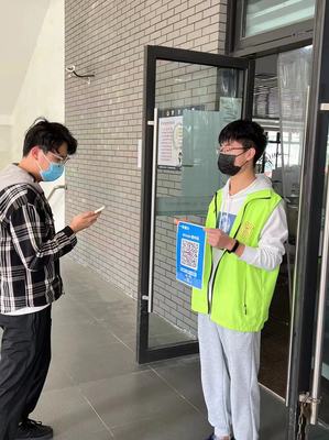 近日,为更好保障在校学生安全,临港校区食堂暂停堂食的同时开启“场所码”的使用,2021级田留洋作为食堂门口的志愿者,用他的“火眼金睛”引导同学们按楼层扫码进出,在他的努力下,同学们从一开始的不了解、不适应到积极配合、有序进出。同样还有2020级的王嘉怡同学,学院在招募食堂志愿者时,她主动报名、配合安排,作为维持秩序志愿者,她在自己的岗位上发光发亮,耐心进行沟通、照顾同学情绪、严格落实进出扫码制度,努力让每位进出食堂的同学安心放心。还有一位口罩监督志愿者,也一直在岗位上坚守,他就是2021级倪啸晨,通过督促进出食堂同学规范佩戴口罩,保证了食堂这个公共场所的安全。