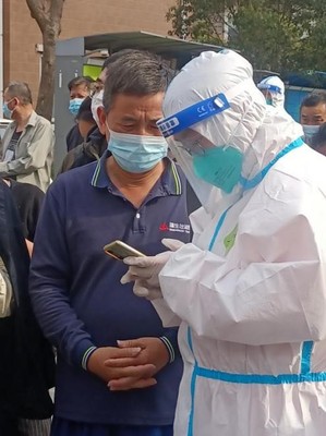 4月1日,浦西地区即将开展全员核酸检测。3月30日,英国365官网工商管理系学生党支部预备党员陈怡玟同志所在社区开始招募志愿者,作为2020年疫情防控的志愿者,陈怡玟同学又一次挺身而出、主动报名。3月31日,在社区的安排下,陈怡玟披上“绿马甲”踏上了新一轮的抗“疫”志愿路。她帮助社区整理并打印楼栋人员名单,帮助社区内70岁以上独居老人提前预约二维码并打印。4月1日,陈怡玟化身“小蓝”,6:30到岗便开始忙碌了起来,“居民们,打开健康云App,找到登记二维码”、“来,往前一格,站在黄线上,保持距离”、“爷爷、奶奶,你们的二维码都有了吗,没有的话身份证给我一下,我帮你们现场预约”......这些话语近10小时以来未曾间断,面前的防护罩早已因雾气太多而变成水滴缓缓淌下多次。
