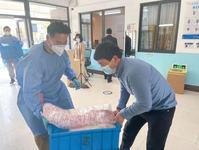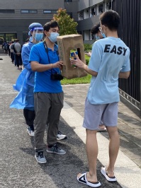 一起搬运餐食的阿布老师 协助搬运物资 阿布老师的小发明——核酸登记盒