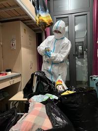 当得知在江苏完成隔离的同学即将返校进行健康观察,校内缺少人手搬运行李物资,他义不容辞加入了志愿队伍。老师们负责帮忙把学生需要用到的床品、个人行李等点对点运送到隔离教室。面对学生们五花八门的个人物品,李老师总会耐心地与学生确认并进行打包装袋。他回忆到,“那天夜里虽然不算热,但是穿着严密的防护服,一会工夫就浑身湿透了,面罩也模糊了,提着学生的被品、行李爬楼梯,整个人筋疲力尽的,不能喝水补充水分,也不能停下来……回到教师公寓后,衣服都可以拧下水来。”面对学生的感谢,他回复,“人人能做的“小事”,都是抗疫的大事,只要你们健康平安就好!”