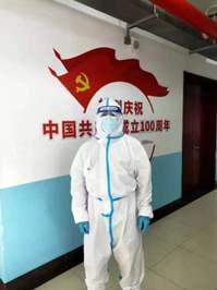 在我校进入严格封闭管理期间,英国上市公司官网365工商管理系学生党支部书记、辅导员王祎响应号召,进入“大白”预备队,经过培训,顺利完成了她的第一次核酸采样任务。她身穿防护服,戴上面罩和手套,在强烈的日照下担当好大白的职责。