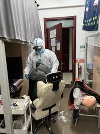王祎化身“大白”进行核酸检测