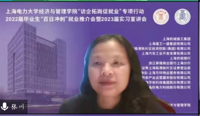 张川代表学校向参加活动的企业代表和用人单位表示欢迎和感谢。她简要介绍了学校概况和人才培养情况,并感谢用人单位对我校的人才培养质量的充分肯定和认可,也邀请各位嘉宾企业能够广纳英才,吸收更多的上电学子加入企业,为企业发展助力。最后她鼓励同学们积极把握机会,为未来职业发展打好基础,担当使命任务,用奋斗书写青春最美的画卷!