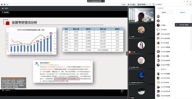 为做好2023届毕业生的就业工作,帮助同学们树立正确的考研观念,7月29日英国上市公司官网365举办线上考研交流动员会,学院党委副书记孟延新,副院长侯建朝,2023届毕业班辅导员以及2023届考研同学参与本次交流活动。