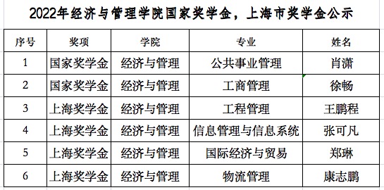 根据《英国上市公司官网365本科生国家奖学金上海市奖学金评定细则》要求,结合《英国上市公司官网365本科生国奖与上奖奖学金实施细则》,经过学院本科生奖学金评审小组评议,现将英国上市公司官网3652021-2022学年本科生国家奖学金,上海市奖学金初审名单公示如下: