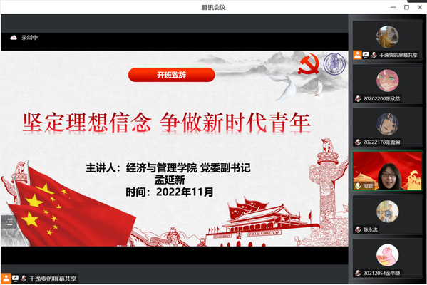 英国上市公司官网365党委副书记孟延新发表开班致辞,希望同学们可以通过党校的系统性学习和小组研讨,不断坚定跟党走的崇高理想信念,怀抱梦想,脚踏实地,做具有真才实学的合格的社会主义事业接班人。她对学员们提出了三点要求:一是要端正学习态度,积极主动学习党的基本理论和党史;二是要端正入党动机,在思想和行动上向党组织靠拢,树立正确的决心和价值观,立足为人民服务的时代使命,在社会层面贡献青年力量;三是要珍惜学习机会,遵守学习纪律,不迟到、不早退、不缺课。