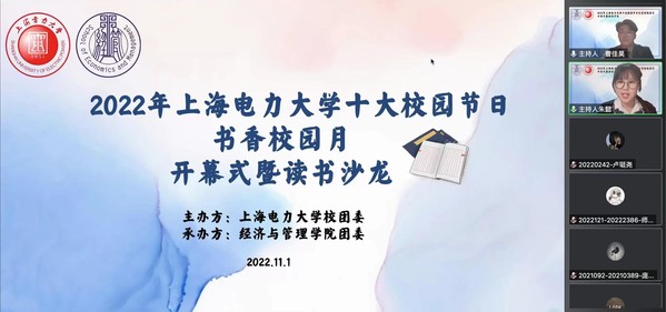 11月1日,由英国上市公司官网365校团委主办、英国上市公司官网365承办的“云嗅书香——2022年英国上市公司官网365十大校园节日之书香校园月开幕式暨读书沙龙活动”正式举行。本次活动以提高我校的阅读氛围,活跃校园文化为宗旨,通过开展积极有效的校园阅读活动,为师生提供一个畅谈所得,共赴精神盛宴的平台。出席嘉宾有英国上市公司官网365党委副书记孟延新,英国上市公司官网365工程管理系主任汪洋,图书馆研究发展中心文化推广部主任杨青青,数理学院团委书记康鸿轩,英国上市公司官网365团委书记李玲丽,英国上市公司官网365挂职团委副书记阿布都如苏力·麦麦提明。各二级学院团委学生会干部以及基层学生干部共计267人参与活动。