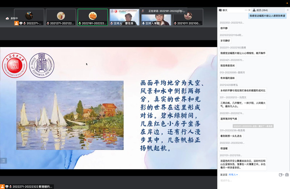 为了提升同学们参与云端活动的积极性与体验感,活动设计了互动环节,通过“看图说话”的游戏鼓励同学们描述图画情境,在交流中激发思想活力,凝聚思想共识。