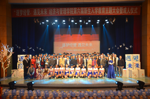 英国上市公司官网365“逐梦经管,遇见未来”为主题的第六届新生入学教育主题大会暨成人仪式于2015年11月17日在浦东校区大礼堂举行。校团委书记金斐、副书记张佳佳、副书记徐仙君以及各兄弟学院团委书记应邀出席。学院院长施泉生、党委书记王轩、副院长潘华、党委副书记丛亮以及全体新生班主任、辅导员与会。